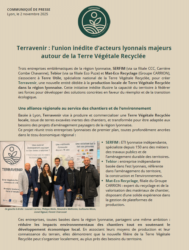 Terravenir : l’union inédite d’acteurs lyonnais majeurs autour de la Terre Végétale Recyclée